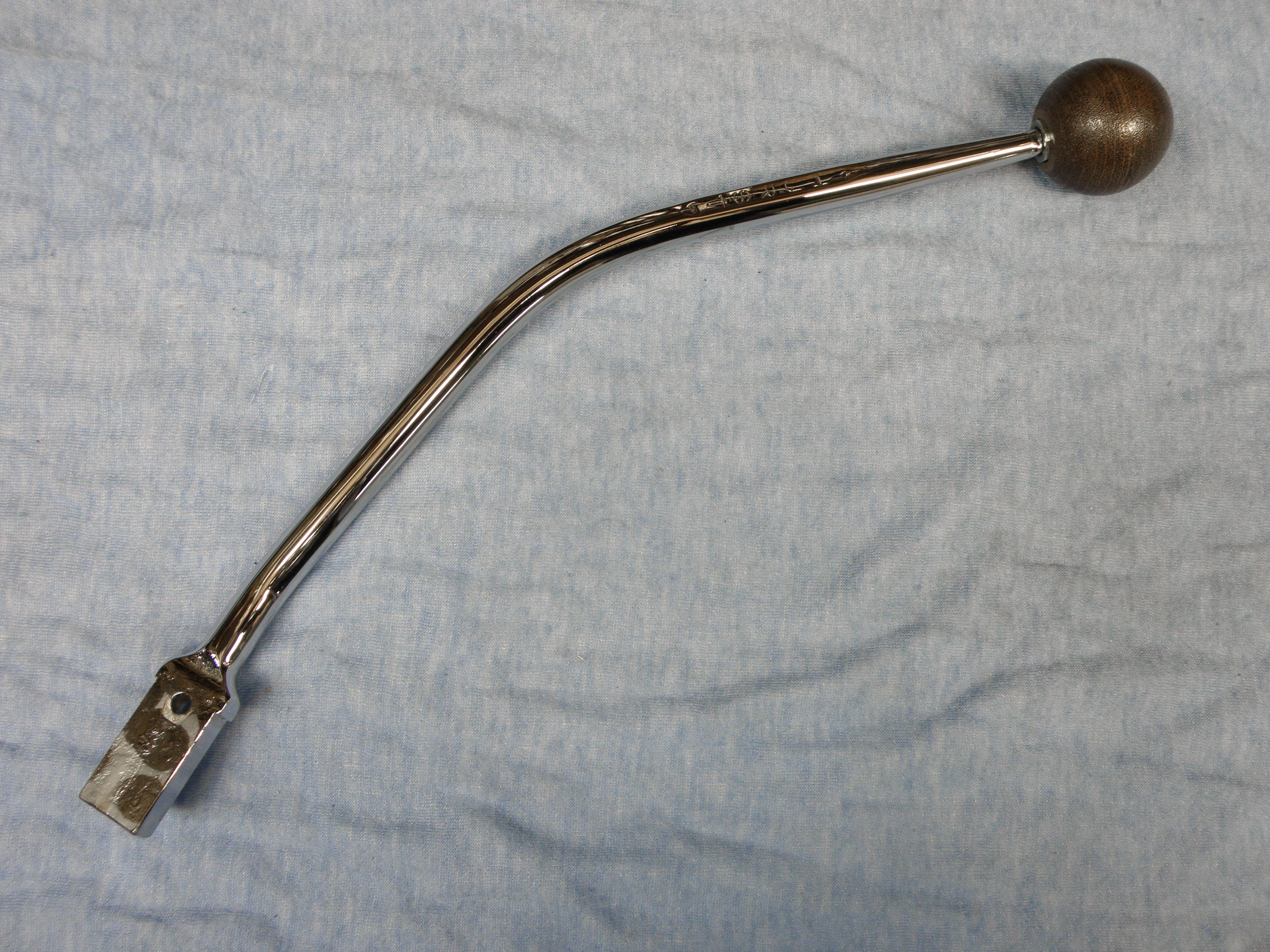 Original restored Hurst shifter handle for '68 - '69 B-Body cars without console. Handle is rechromed with new white ball and lock nut. Woodgrain ball additional $17. (Limited quantities availiable.)